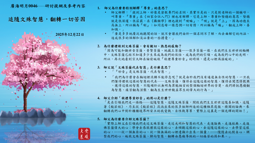 廣海明月0046 追隨文殊智慧,翻轉一切苦因—研討題綱及參考內容 (2025/12/22)