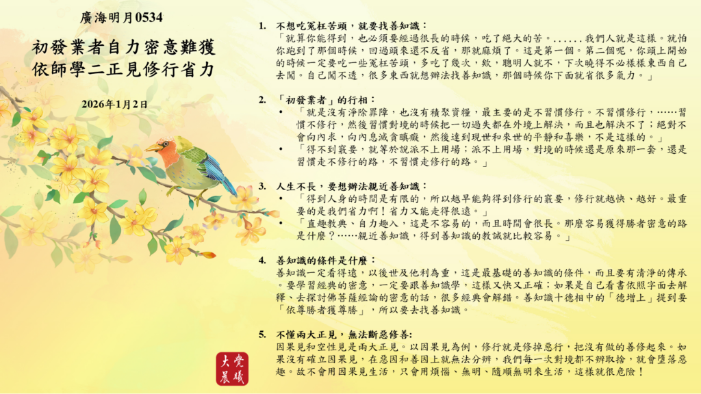 1. 不想吃冤枉苦頭,就要找善知識: