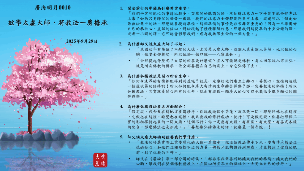 5. 師父講太虛大師的功德要我們學什麼: