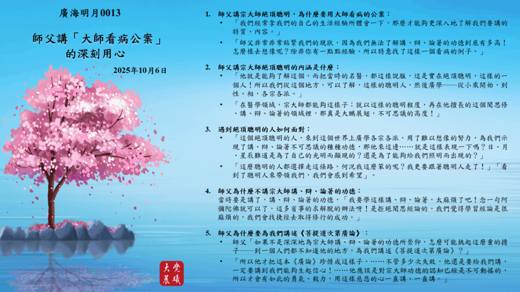 1. 師父講宗大師絕頂聰明,為什麼要用大師看病的公案: