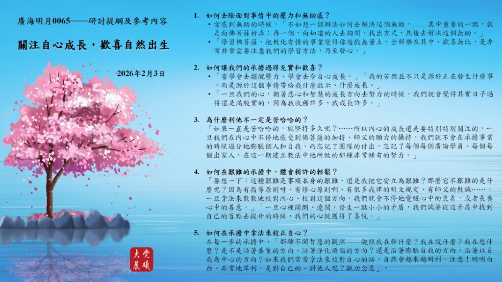 廣海明月0065 關注自心成長,歡喜自然出生—研討題綱及參考內容 (2026/02/03)