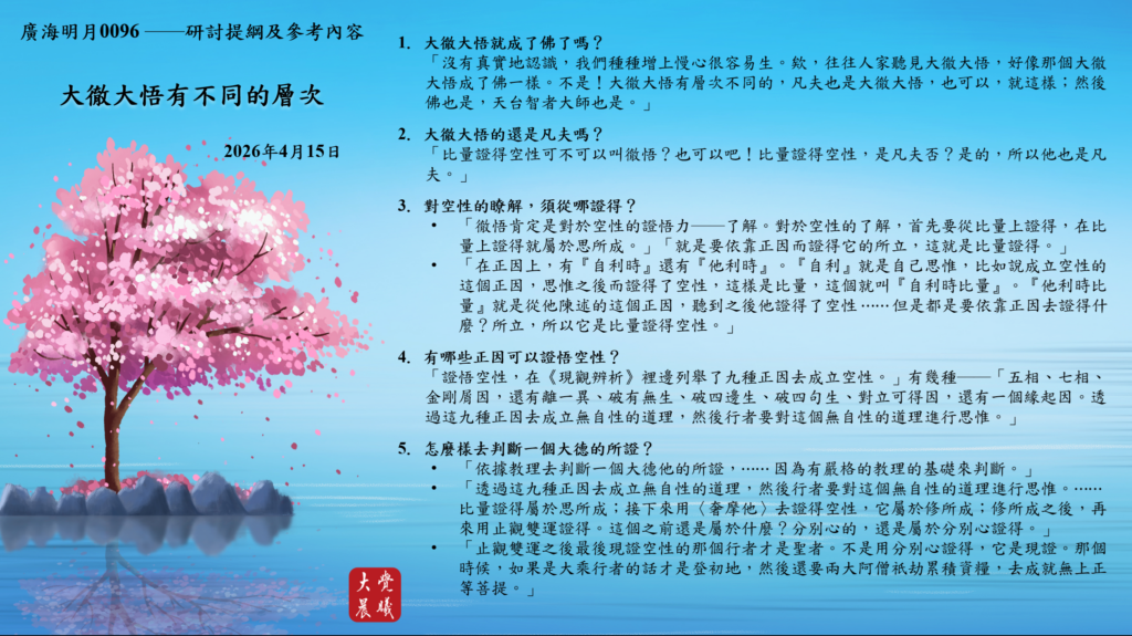「比量證得空性可不可以叫徹悟?也可以吧!比量證得空性,是凡夫否?是的,所以他也是凡夫。」