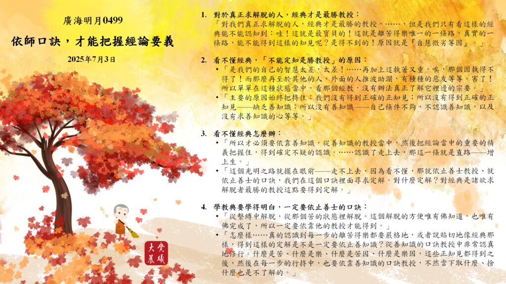廣海明月0499 學習重點—依師口訣,才能把握經論要義 (2025/07/03)