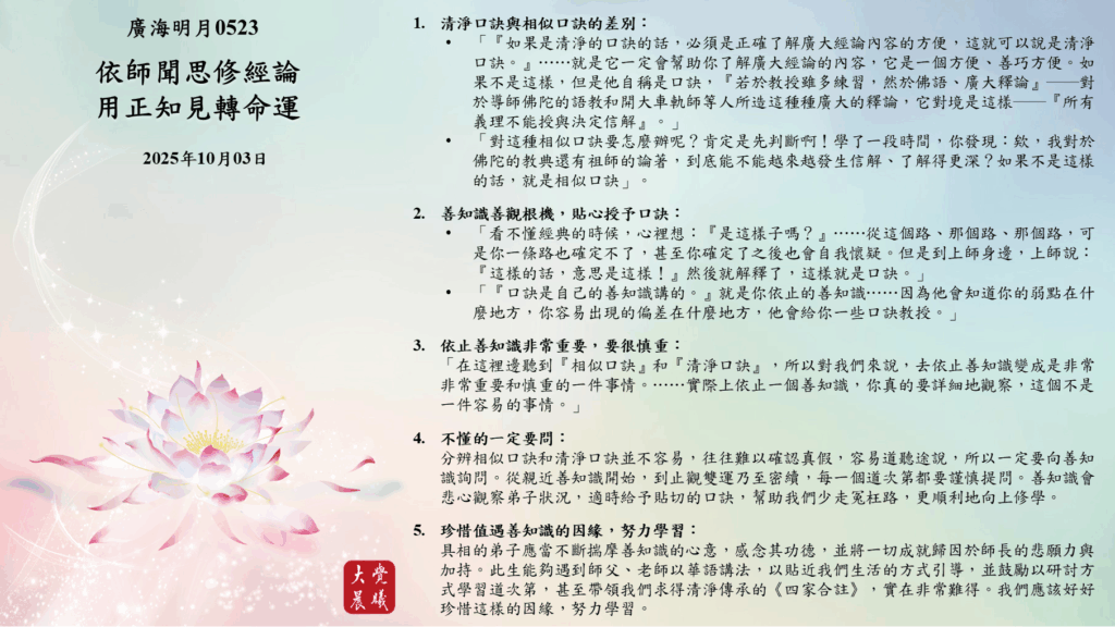 廣海明月0523 學習重點2—依師聞思修經論,用正知見轉命運 (2025/10/03)