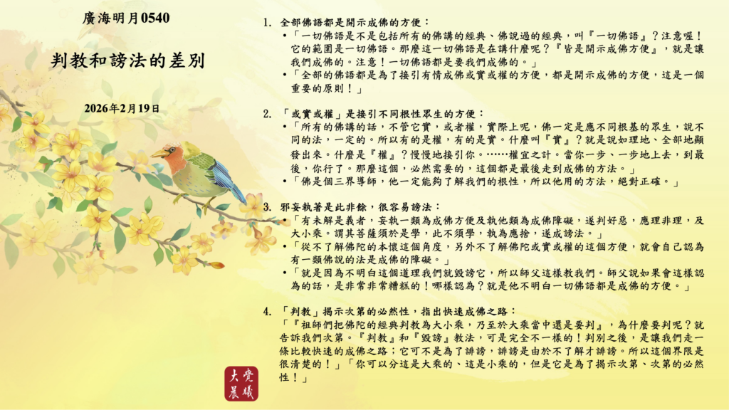 廣海明月0540 學習重點4—判教和謗法的差別 (2026/02/19)