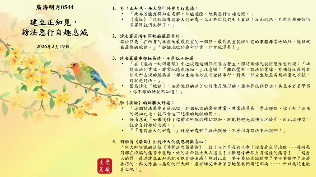廣海明月0544 學習重點1—建立正知見,謗法惡行自趣息滅 (2026/03/19)