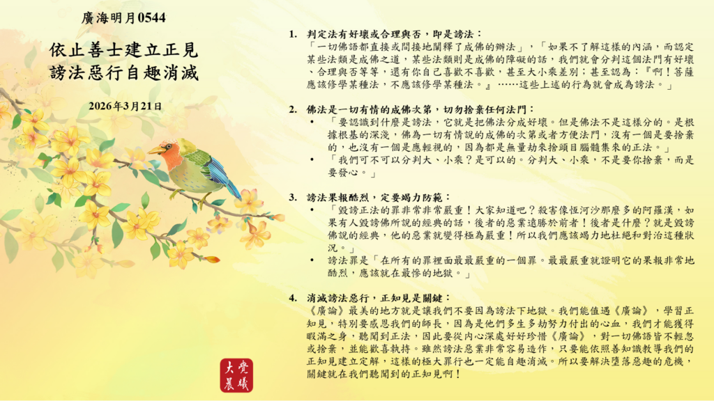 廣海明月0544 學習重點3—依止善士建立正見,謗法惡行自趣消滅 (2026/03/21)