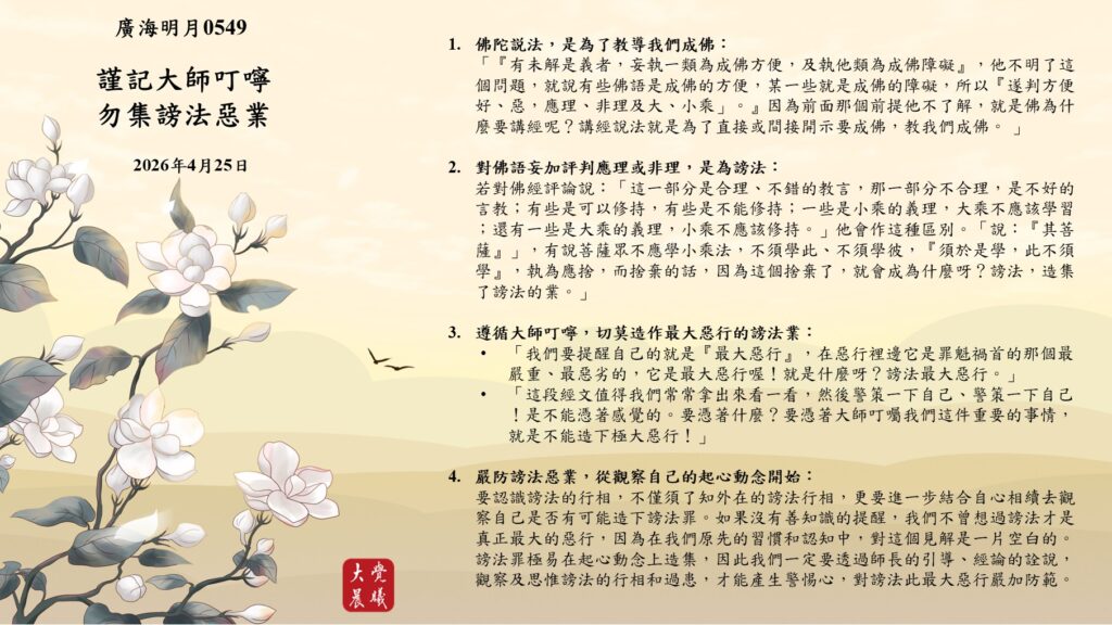 廣海明月0549 學習重點3—謹記大師叮嚀 勿集謗法惡業 (2026/04/25)