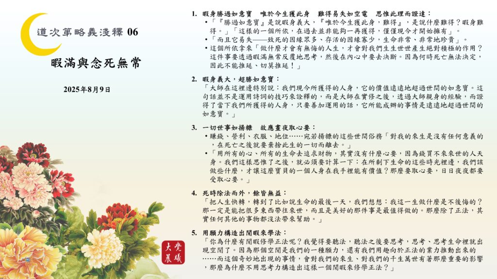 道次第略義淺釋06 學習重點—暇滿與念死無常 (2025/08/09)