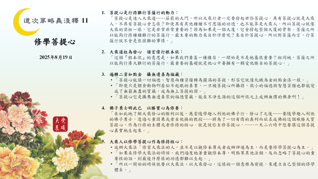 ﹡「所以一開始的時候就要以大乘法、以大乘發心,這樣的一個意樂為前提,來建立自己整個的修學體系。」